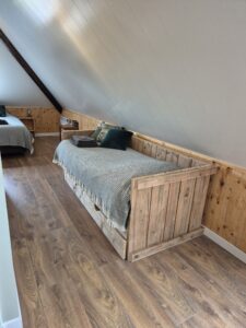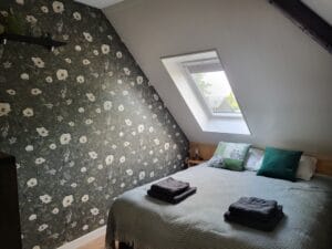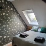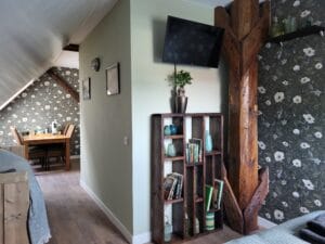 Kamer en suite van 29,5 m2 met 1 2-persoonsbed en mogelijkheid voor 2 1-persoonsbedden, dus geschikt voor maximaal 4 personen (2 volwassenen 2 kinderen). In de kamer bevinden zich ook een tafel met 4 stoelen, koffie- en theezetfaciliteiten, een kast en tv. Uitzicht op het voorerf en de landerijen. De prijs voor de genoemde kamer is inclusief ontbijt en gratis parkeren.